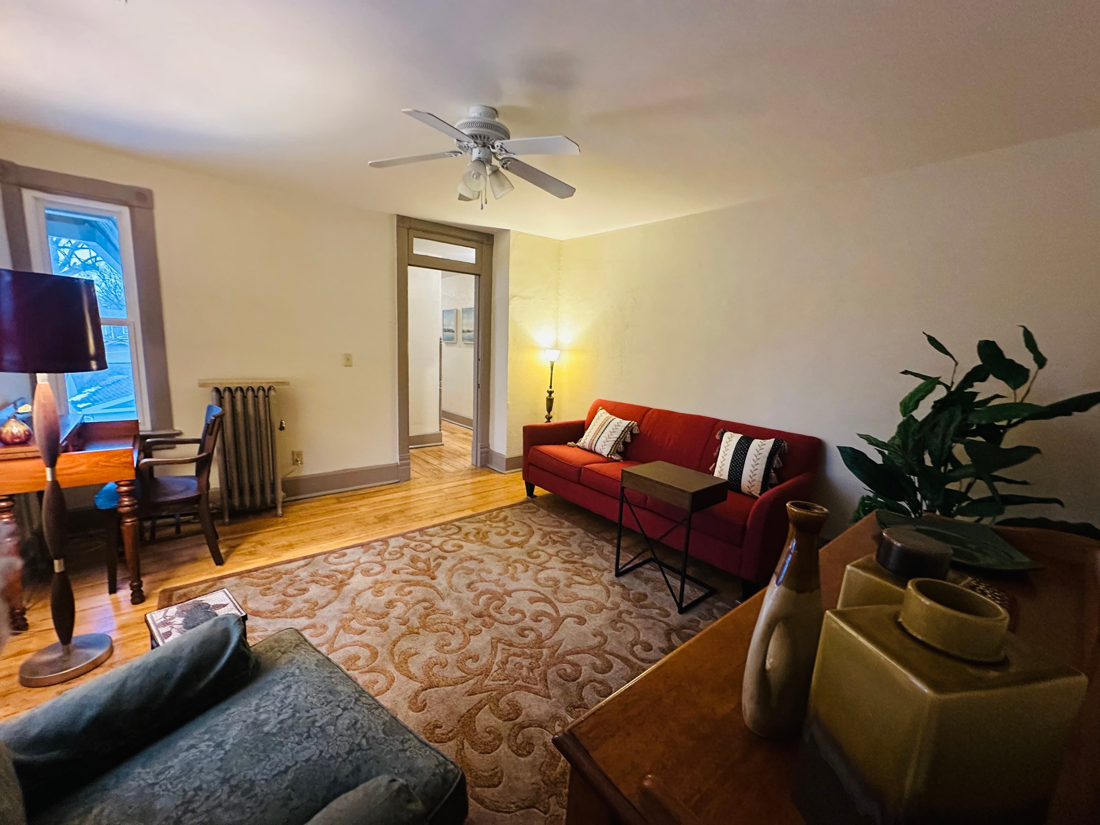 Enjoy the privacy and charm of this fully private one-bedroom apartment located on the second floor of Laven House, a beautifully renovated Queen Anne Victorian home. The apartment features its own private entrance at the back of the house, offering a peaceful and independent stay.