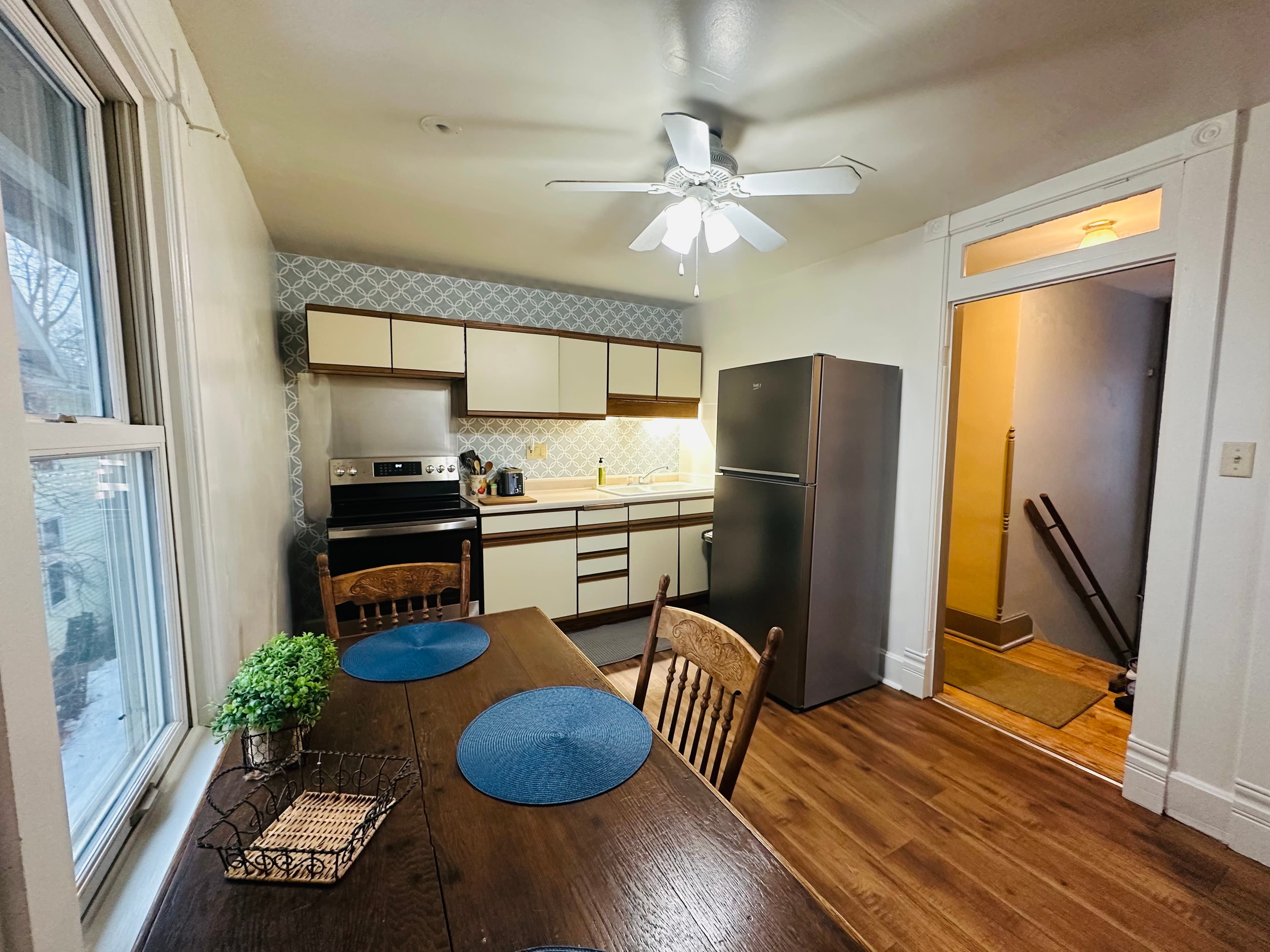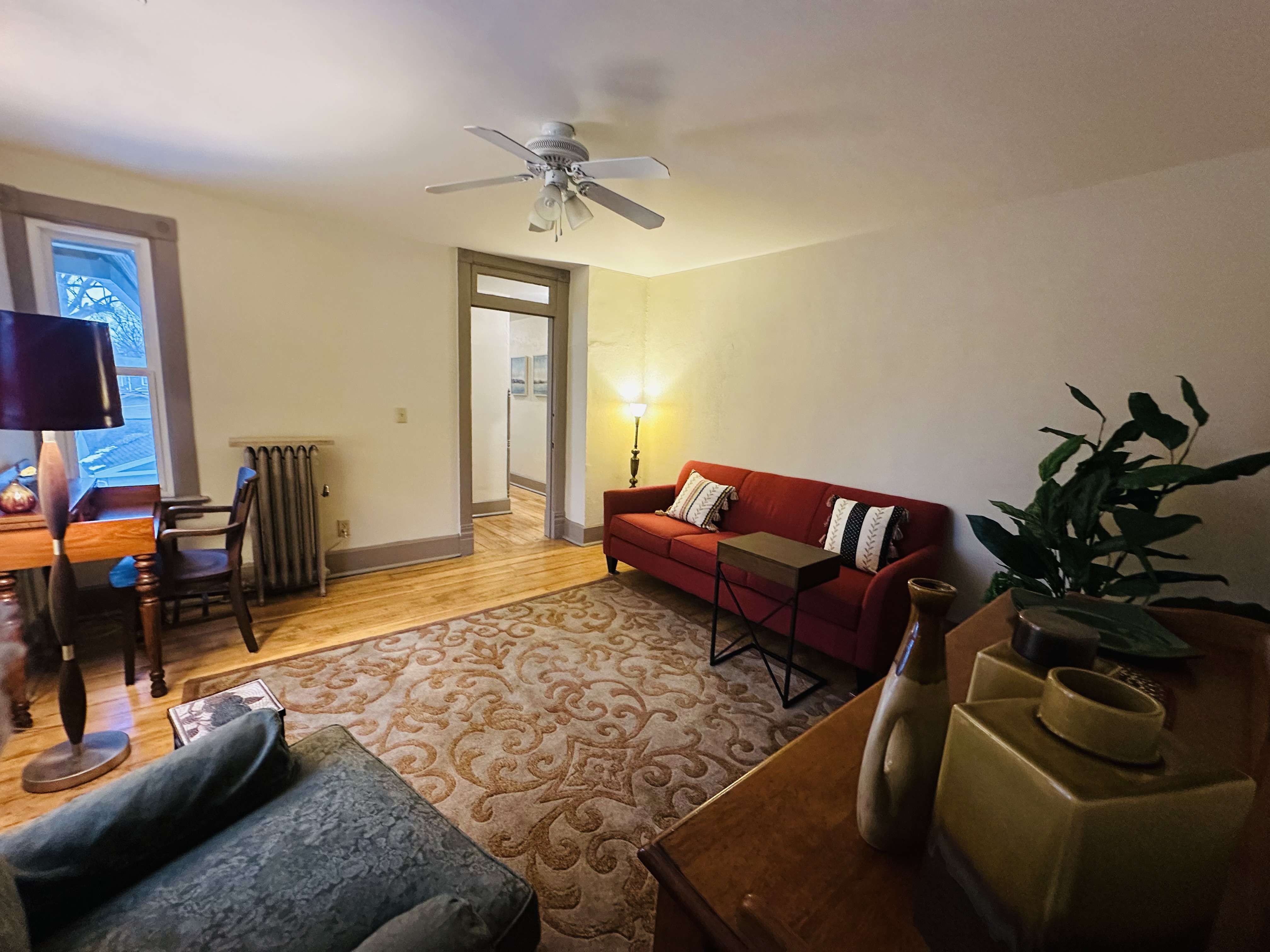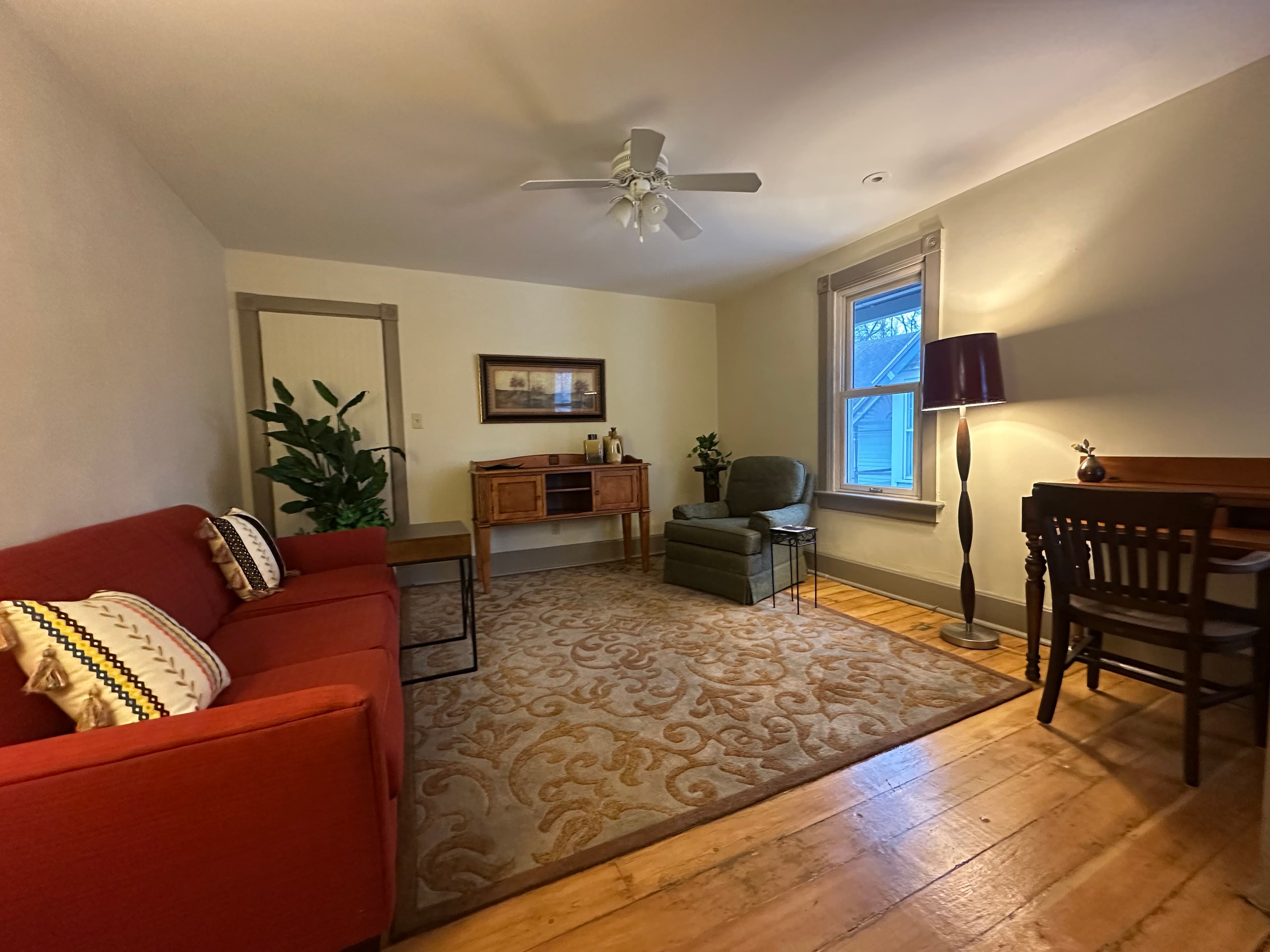Enjoy the privacy and charm of this fully private one-bedroom apartment located on the second floor of Laven House, a beautifully renovated Queen Anne Victorian home. The apartment features its own private entrance at the back of the house, offering a peaceful and independent stay.